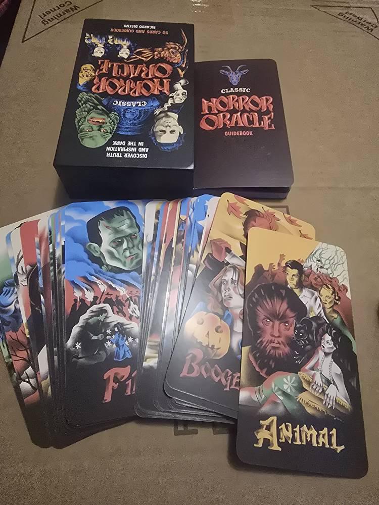NEW AND ESTABLISHED HORROR MOVIE CLASSICS: Films include Häxan, Creature from the Black Lagoon, Get Out, The Thing, Re-Animator, Nosferatu, Alien, Eyes without a Face, Psycho, Ringu, The Babadook, An American Werewolf in London, The Blair Witch Project, Night of the Living Dead, Hellraiser, Poltergeist, The Wicker Man, and dozens more, each with their own oracular guidance to offer.